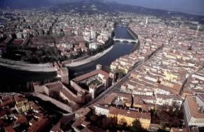 Adige. Veduta di Verona con il Castelvecchio.