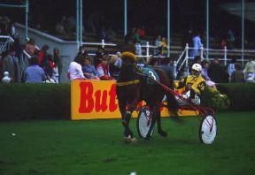 Ippica . Fase di una gara di corsa al trotto.