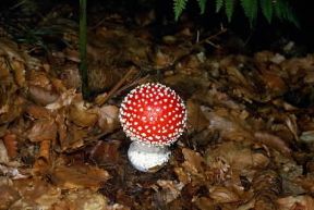 2) Ovolo malefico, fungo (Amanita muscaria) della famiglia Amanitaceae, detto anche ovolaccio. Ha corpi fruttiferi a cappello rosso scarlatto o rosso-aranciato, coperto di verruche bianche o gialline con lamelle e gambo bianchi, con anello concolore, bulboso alla base, circondato da una volva ridotta a squamosità concentriche. Predilige i boschi di conifere e quelli di betulle: è tossico ma non mortale, nonostante la fama. Gli sono affini, anche per grado di tossicità: Amanita regalis (=Amanita muscaria varietà umbrina), dal cappello bruno rosso cupo, e Amanita aureola, con cappello privo di verruche e volva a frammenti quasi anulari.
