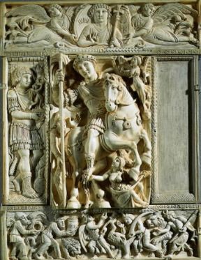 valva di dittico, diviso in cinque pannelli (fine sec. V-inizi sec. VI; Parigi, Louvre). Mancante di una delle parti laterali, porta nel centro la figura di un imperatore a cavallo, la cui identificazione è discussa (Zenone, Anastasio o Giustiniano) e in basso una schiera di personaggi orientali recanti doni. È un altorilievo notevolissimo per l'equilibrio della composizione e lo stile nitido, espressivo e vivace.