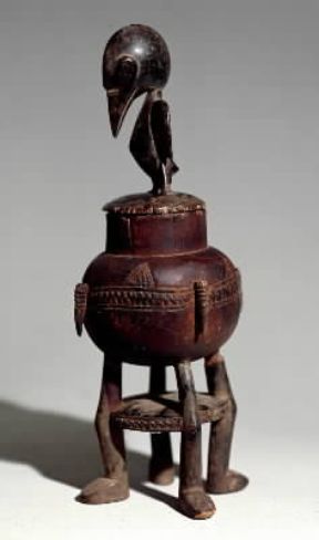 Costa d'Avorio. Vaso per unguenti sormontato da un calao.