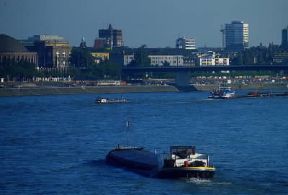 Düsseldorf . Veduta della città tedesca con il Reno.