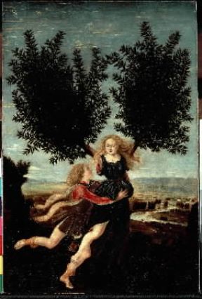 Dafne. La ninfa raffigurata con Apollo in un dipinto del Pollaiolo (Londra, National Portrait Gallery).