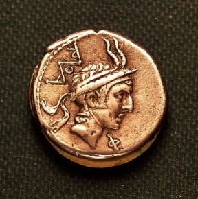 Filippo V effigiato su un denario di L. Marco Filippo (sec. II a. C.; Milano, Museo del Castello Sforzesco).