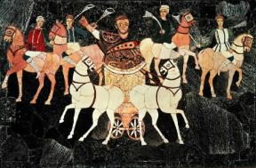 Giunio Basso. Tarsia marmorea dalla basilica di Giunio Basso raffigurante il trionfo del console romano (Roma, Museo Nazionale Romano).
