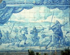 Portogallo. La presa di Lisbona da parte di Alfonso raffigurata su piastrelle maiolicate del sec. XVIII.
