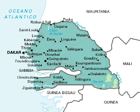 Indice(République du Sénégal). Stato dell'Africa occidentale (196.722 km²). Capitale: Dakar. Divisione amministrativa: regioni (11). Popolazione: 11.660.000 ab. (stima 2008). Lingua: francese (ufficiale), dialetti sudanesi, diola, serer, wolof. Religione: musulmani sunniti 92%, animisti/credenze tradizionali 6%, cristiani 2%. Unità monetaria: franco CFA (100 centesimi). Indice di sviluppo umano: 0,502 (153° posto). Confini: Mauritania (N), Mali (E), Guinea e Guinea-Bissau (S), oceano Atlantico (W). Membro di: CEDEAO, OCI, ONU, UA e WTO, associato UE.