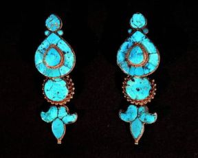 Tibet. Orecchini in turchese e oro (Parigi, Musée Guimet).