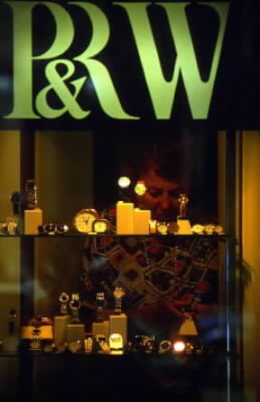 Zurigo. Una vetrina di una gioielleria lungo la famosa Bahnhofstrasse.