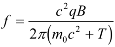 (c, velocità della luce; q, m0, carica e massa a riposo del protone; B, campo di guida;