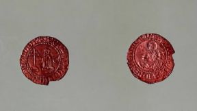 Aspro. Recto e verso di una moneta coniata a Rodi.