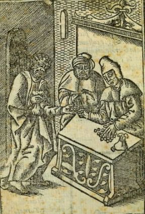 Banca del sec. XVI in una xilografia (Milano, Civica Raccolta Stampe A.Bertarelli).