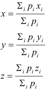 Dato un sistema di n punti materiali, rispettivamente di pesi p₁, p₂, ... pn, dalla legge di composizione delle forze si deducono, per le coordinate x, y, z del baricentro, le seguenti espressioni