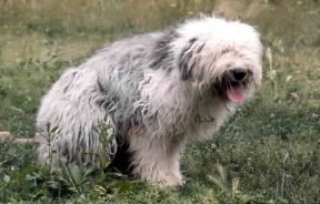 s. inglese (propr., coda a ciondolo) usato in italiano come sm. Razza di cani da pastore. Hanno la coda corta; il mantello è folto, di colore grigio o blu con macchie bianche. L'altezza è di 56 cm.