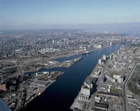 Canale. Impianti portuali sul canale Inderhavn a Copenaghen.