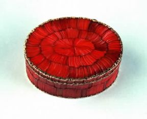Corniola. Tabacchiera del sec. XVIII in corniola intagliata.