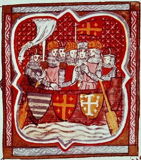Crociata. Il viaggio verso la Terra Santa; miniatura del sec. XIV (Parigi, Bibliothèque Nationale).