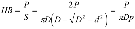 La durezza HB è uno degli indici più usati nei controlli pratici e anche per le ricerche di carattere scientifico. La misura si esegue nel modo seguente: sulla superficie del pezzo, previamente spianata e lisciata, viene compresso per un certo tempo, mediante l'applicazione di un carico noto P agente in senso perpendicolare alla superficie, un penetratore costituito da una sfera di acciaio durissimo di diametro D. La durezza HB viene definita come rapporto tra il carico P e l'area S dell'impronta a forma di calotta sferica prodotta dal penetratore. S viene determinata misurando il diametro d o la profondità p dell'impronta: poiché risulta