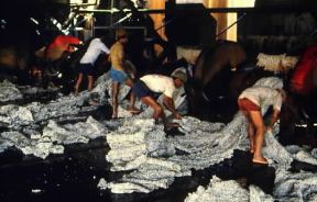 L'organizzazione di una piantagione di per la produzione di Hevea richiede notevoli capitali, sia per la vastità dei terreni necessari sia per la preparazione di questi, la semina, il trapianto delle piantine; così pure la raccolta del latice è assai complessa e richiede l'impiego di personale specializzato. Ciascuna pianta produce quasi 3 kg di gomma essiccata all'anno e di norma viene sfruttata a partire dal 7º e fino al 34º anno di età, alternando periodi di produzione a periodi di riposo. In media su 1 ha si piantano da 250 a 300 alberi e la relativa produzione quindi si aggira sui 500-600 kg annui di caucciù; in taluni casi, con colture particolarmente selezionate, si possono raggiungere i 2000 kg/ha. L'estrazione del latice si ottiene incidendo un sottile e stretto strato di corteccia (excisione) con un apposito coltello lungo un tracciato per lo più a lisca di pesce, ossia con una linea centrale longitudinale e varie altre oblique a essa convergenti da ambo i lati; il latice che cola dai diversi tagli si raccoglierà alla base del tratto verticale in un apposito recipiente fissato al fusto. Di norma tali incisioni interessano da 1/3 a 1/2 della circonferenza del tronco, per un'altezza modesta; l'operazione viene ripetuta periodicamente su ciascuna pianta, ma sempre in zone diverse, avendo cura di non ritornare su un tracciato già eseguito prima di 6-7 anni. Appena raccolto, il latice è additivato con acido formico o acido acetico o ammoniaca o solfito di sodio per impedirne la coagulazione e inviato allo stabilimento di lavorazione. Sul mercato è immesso sia il concentrato di latice sia la gomma essiccata. Il concentrato, al 60% in caucciù, è ottenuto per semplice centrifugazione e ulteriore addizione di ammoniaca, acido borico, dietilditiocarbammato di zinco ai fini della preservazione. La gomma essiccata si ricava per diluizione del latice al 15% e acidificazione con acido formico o acetico con conseguente coagulazione e precipitazione al fondo; un successivo passaggio attraverso una calandra a cilindri rotanti (a velocità uguali o differenti) le impartisce la forma di fogli lisci oppure crespati (rispettivamente sheet e crêpe). Il prodotto è poi inviato all'essiccamento in stufe in presenza di fumo di legna (ribbed-smoked-sheet) o di aria (air-dried-sheet). Negli ultimi tempi la gomma è stata immessa sul mercato anche sotto forma di balle ricavate per granulazione del coagulo, essiccamento e compressione in stampi. La trasformazione in prodotti finiti avviene con due distinti cicli per la gomma essiccata e il latice. La gomma essiccata, in balle, crêpe, fogli, se ha subito un lungo processo di immagazzinamento che può aver indotto cristallinità, viene tagliata e riscaldata a 30 ºC e quindi inviata a un masticatore, tipo di mulino a cilindri o di mescolatore, dove viene sminuzzata sia per poterla mescolare ad altre qualità di gomma sia per ridurne la viscosità che durante l'immagazzinamento può essersi eccessivamente innalzata a causa dei processi di reticolazione. È questa la fase di masticazione. Segue una fase di miscelazione (mescola) che permette l'addizione di tutti quei componenti atti a impartire la resilienza e la resistenza meccanica proprie della gomma: riempitivi per diminuire il costo e impartire resistenza meccanica (carbon black, silicato d'alluminio); antiossidanti e antiozonizzanti (arilammine, fenoli, diarilammine) per ridurre l'effetto d'invecchiamento; plastificanti (acido stearico); oli per diminuire la viscosità; composti di zolfo e acceleranti necessari per la vulcanizzazione. È questa l'ultima e la più importante delle fasi di lavorazione. È ottenuta per riscaldamento a 140-180 ºC, operando con una percentuale variabile di zolfo secondo il prodotto finale che si vuole ottenere. Lo zolfo si “aggancia” alle catene polimeriche della gomma diminuendone la flessibilità e trasformando il prodotto da plastico a elastico ad alta velocità di recupero dell'allungamento. La trasformazione in prodotti finiti si effettua per stampaggio (la vulcanizzazione avviene direttamente nello stampo) oppure per estrusione e calandratura e successiva vulcanizzazione dei pezzi in stufe. Il latice è anch'esso additivato di vulcanizzanti, acceleranti, saponi, stabilizzanti per impedire il coagulo, riempitivi, rinforzanti (in misura minore che per la gomma essiccata); miscelato viene impiegato come bagno per immersione della matrice dell'oggetto da rivestire, poi passato all'essiccamento, vulcanizzazione a caldo, lavaggio; oppure viene usato per la produzione di gomme espanse per colatura nello stampo insieme con una sostanza decomponibile a caldo con formazione di gas (espandente), poi vulcanizzato e contemporaneamente espanso. Per quanto riguarda le gomme sintetiche , una volta ottenuto il polimero si procede analogamente a quanto avviene per la gomma naturale: si sottopone cioè il polimero alle fasi di masticazione, mescola e vulcanizzazione le quali ovviamente saranno svolte con modalità diverse specifiche per ciascun polimero. La gomma è utilizzata per la fabbricazione di pneumatici (oltre i 3/5 del prodotto globale), molle e cinghie, guarnizioni, espansi, tubi, suole per scarpe, rivestimenti elettrici, supporti antivibranti; in particolare il latice si usa per rivestimento di oggetti, film e quale componente di adesivi e legante per fibre.