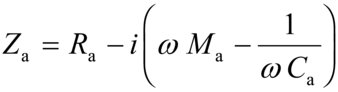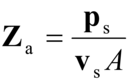 fra il vettore pressione sonora ps e il vettore flusso di velocità vsA, dove vs è la velocità di spostamento, A l'area della sezione. A differenza dell'impedenza meccanica, l'impedenza acustica viene considerata sia in entrata, impedenza d'entrata, sia in uscita, impedenza d'uscita, sia in una sezione intermedia. Per un sistema costituito da una massa acustica Ma in serie con una capacitanza Ca e una resistenza acusticaRa, l'impedenza acustica d'entrata è data dalla relazione
