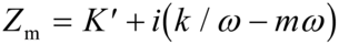 dove k´ è il coefficiente di proporzionalità relativo alla forza d'attrito (rapporto fra forza d'attrito e velocità), k è il coefficiente di proporzionalità relativo all'elasticità (rapporto fra forza e deformazione elastica), ω=2πf dove f è la frequenza. I termini k´ e (k/ω–mω) sono rispettivamente la parte reale R e la parte immaginaria X dell'impedenza; quest'ultima si annulla alla frequenza di risonanza