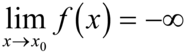 Analogamente si dice che una funzione y=f(x) tende all'infinito negativo, per x tendente a x0, quando essa assume, nell'intorno di x0, valori arbitrariamente bassi; dato cioè un qualsiasi numero K>0, esiste un numero δ, dipendente da K, tale che per ogni punto x distante da x0 meno di δ si ha f(x)<-k. In questo caso si dice che il limite di f(x) per x tendente ad x0 è uguale a “meno” infinito e si scrive