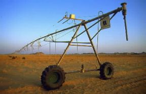 Irrigazione . Impianto sperimentale di irrigazione nel Sahara orientale.