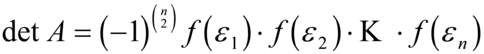 A ogni matrice quadrata A si associa un numero detto determinante di A. Si indica con il simbolo det A, oppure si scrive tutta la matrice A e si sostituiscono le parentesi tonde (o quadre) con barre verticali. Si definisce il determinante di una matrice quadrata A=[a] di ordine n nel seguente modo: