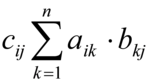 , ottenuto moltiplicando gli elementi della riga i-esima di A, cioè a1, a2,..., a, rispettivamente per gli elementi della colonna j-esima di B cioè b1, b2,..., b ed eseguendo poi la somma dei prodotti ottenuti. Per esempio, nel caso di due matrici quadrate di tipo (2, 2):