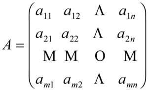 8) In matematica, si definisce matricedi tipo (m, n) una tabella di m·n numeri (reali o complessi) disposti su m linee orizzontali (dette righe) e n linee verticali dette colonne.