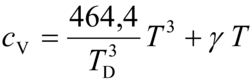 dove TD è una costante caratteristica di ogni sostanza chiamata temperatura di Debye, γ è un'altra costante detta costante elettronica e T la temperatura assoluta.