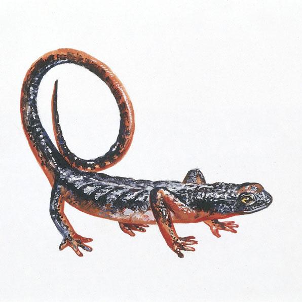 La salamandrina dagli occhiali, il più piccolo urodelo europeo, è tipica della nostra penisola e in particolare del versante occidentale della catena appenninica, dalla Liguria alla Calabria, dove vive a quote comprese fra poche decine e 1300 metri, sia nelle foreste sia in spazi aperti. Il nome scientifico della specie deriva dall’erronea valutazione effettuata da un naturalista francese circa il numero di dita (3) presenti sulle zampe anteriori dell’animale: la salamandrina invece è munita di 4 dita per ogni arto, sia anteriore sia posteriore. Il nome comune è dovuto invece alla macchia chiara fra gli occhi, che ricorda un paio di occhiali. Ha colore bruno scuro con chiazze nere e grigie.