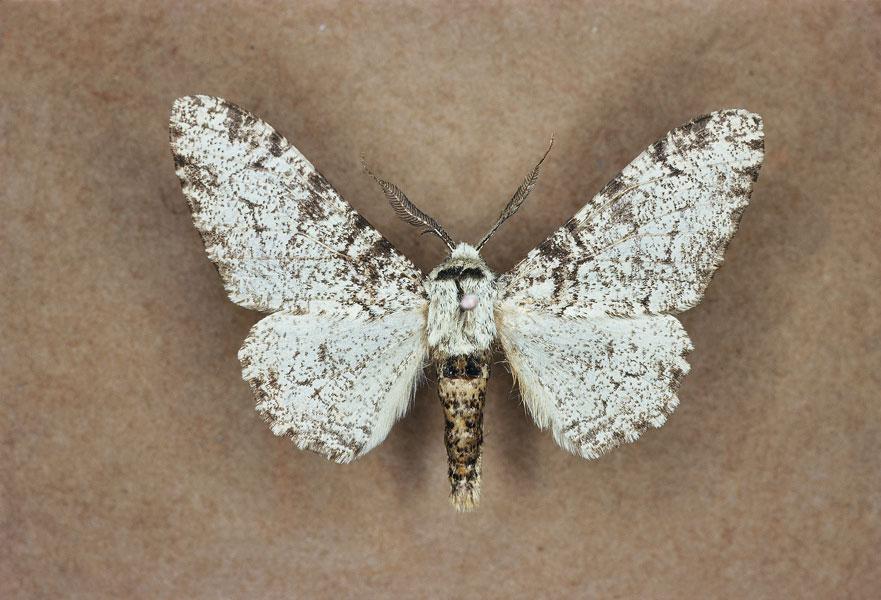 Biston betularia è una farfalla assai nota perché è stata protagonista degli studi sul “melanismo industriale”: nelle zone nordeuropee la specie è rappresentata da 2 forme diverse, una di colore chiaro e l’altra di colore scuro. In passato la forma chiara era più abbondante, mentre dopo la Rivoluzione Industriale ha preso il sopravvento la forma scura perché gli individui scuri si mimetizzano meglio sui tronchi delle betulle che, invece di essere biancastri come un tempo, sono spesso anneriti dal fumo degli scarichi industriali. Gli adulti volano da maggio a luglio e depongono le uova soprattutto sui rami e sui tronchi della betulla (betularia significa appunto “della betulla”), a spese della quale si nutrono i bruchi. Questi ultimi sono i responsabili del nome di Geometridi attribuito alla famiglia, che si riferisce al loro strano modo di procedere. Poiché posseggono solo 2 coppie di false zampe, una all’inizio e una alla fine del corpo, per avanzare avvicinano le false zampe posteriori a quelle anteriori piegando il corpo ad arco; quindi distendono il corpo e lo slanciano innanzi, posando le false zampe anteriori più avanti rispetto a quelle posteriori, che vengono spostate a loro volta, piegando di nuovo il corpo ad arco. In questo modo sembrano letteralmente “misurare” come geometri la superficie su cui si muovono.