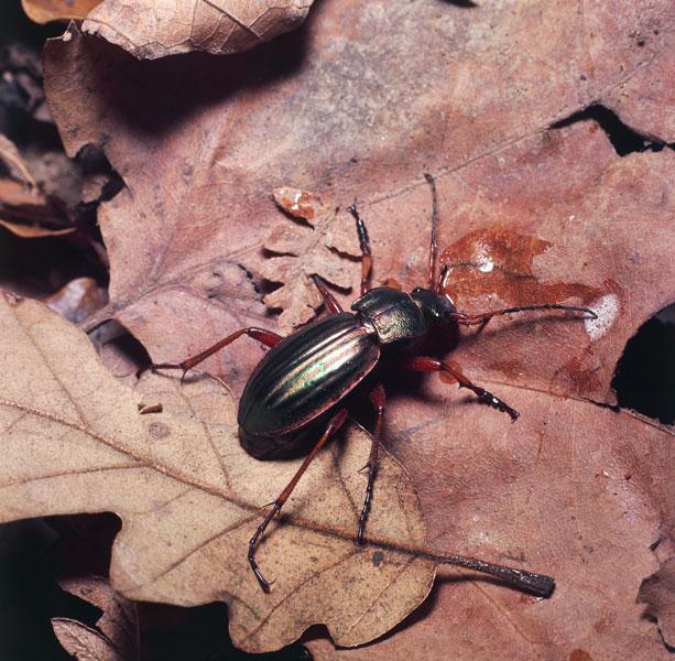 Presente in Europa, dal nord della Spagna all’Europa centrale (il limite dell’areale attraversa la Polonia), ma assente in Italia, il carabo dorato è di colore verde dorato metallico, come la specie affine Carabus auronitens, con cui facilmente lo si può confondere. Rivaleggia con ben pochi altri Coleotteri quanto a eleganza e splendore della livrea, dotata, oltre che di colori stupendi, metallici e iridescenti, anche di varie ornamentazioni come costolature e punteggiature. Il carabo dorato vive in campi e giardini ed è utile all’agricoltura perché si nutre di limacce, larve di dorifore, maggiolini e altri invertebrati dannosi alle colture. La femmina depone le uova in primavera-estate, quindi muore; la nuova generazione, destinata a superare l’inverno, compare a fine estate. Alla stessa famiglia appartengono Callistus lunatus e le specie dei generi Chlaenius e Calathus.