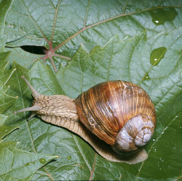 Comune in tutta Europa, in Asia e nelle Americhe, la chiocciola è molto diffusa anche nel nostro Paese e si incontra nei luoghi umidi fino a un’altitudine di 1800 metri. Possiede una conchiglia robusta che può raggiungere un diametro di 4 centimetri ed è a spirale conica, con 4-5 giri; il colore è bruno-giallognolo con 3-5 fasce bruno chiaro. Sul capo spuntano 4 tentacoli retrattili, e sulla coppia più lunga sono posizionati gli occhi. Il piede è molto allungato e di forma ovale. La chiocciola è ben nota agli agricoltori poiché si nutre di una grande varietà di frutti, ortaggi, fiori e foglie, arrecando spesso gravi danni alle coltivazioni. Questo mollusco può contare su un’importante risorsa: la capacità di sopportare digiuni lunghi anche diversi anni. Pur essendo ermafrodita, si riproduce attraverso l’accoppiamento e depone le uova in luoghi umidi; dopo circa 20 giorni nascono individui che assomigliano già agli adulti.