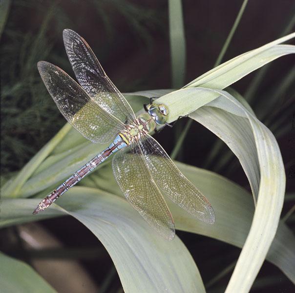Presente in Europa, nell’Asia Minore e in Africa, fino al Capo di Buona Speranza, la libellula imperatore è una delle più grosse libellule del nostro continente, e si incontra in genere presso gli specchi di acque ferme. Il maschio ha torace verdastro e addome azzurro, con una marcata striscia nera mediana, che nella femmina si presenta bruna e più larga. Le sue larve sono tra le più voraci che esistano: tengono una parte del proprio apparato boccale ripiegata sotto il capo, come la lama di un coltello a serramanico, e stanno in agguato tra l’intricata vegetazione del fondo degli stagni, pronte a scattare e catturare la preda. Gli adulti sono volatori potenti, attivi principalmente nelle ore più calde della giornata e, nel nostro Paese, tra la fine di maggio e settembre. I maschi volano senza sosta circa un metro sulla superficie dell’acqua e sono fortemente territoriali: aggrediscono e scacciano ogni altro maschio della stessa specie che penetri nel loro territorio, ma spesso anche i maschi di altre specie di libellule. Le femmine non sono aggressive e volano rasente l’acqua. Durante l’accoppiamento il maschio afferra la compagna con i cerci, dopodiché la coppia, compiuto un breve volo, si posa. Dopo l’accoppiamento, la femmina ritorna sull’acqua e cerca il luogo adatto ove deporre le uova, di norma su piante sommerse. Il ciclo di sviluppo dura in genere un anno, ma se il clima è particolarmente freddo le uova o le neanidi possono svernare nell’acqua, allungandolo a 2 anni.