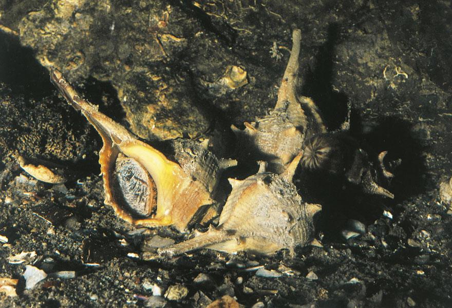 Presente nel Mar Mediterraneo, Murex brandaris è un mollusco di colore giallo o grigiastro dotato di una splendida conchiglia di forma oblunga, con l’apertura che si prolunga in un canale stretto e rettilineo. Come tutti i Muricidi, Murex brandaris è ricercatissimo dai collezionisti di conchiglie. Specie simile, ma leggermente più grande, anch’essa presente nel Mar Mediterraneo, è Murex trunculus. Anticamente i Muricidi erano considerati assai preziosi: da questi molluschi, infatti, si estraeva una sostanza nota come porpora, utilizzata per tingere i tessuti. A secernere questa "tintura", che a contatto con l’aria e con la luce assume una colorazione rossastro-violacea, sono speciali ghiandole. Un altro mollusco in grado di secernere la porpora è Purpura lapillus, provvisto di conchiglia piuttosto massiccia e globosa, nonché di tentacoli grossi e corti.