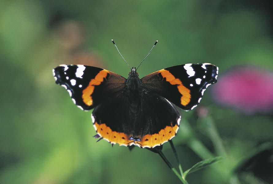 Diffusa in Europa, in Asia e nell’America Settentrionale, la vanessa atalanta, o vulcano, si riconosce facilmente per il vivace disegno di colore marrone scuro, bianco e rosso che orna le sue ali. In estate e all’inizio dell’autunno è possibile vederla volare nei prati, nei giardini, nei boschi e nelle radure; si posa volentieri sui ceppi e sui tronchi feriti per succhiare la linfa, ed è attratta anche dai frutti molto maturi; i bruchi invece si nutrono di foglie d’ortica. Diurna e migratrice, la vanessa atalanta in primavera si sposta dal sud verso l’Europa centrale e settentrionale, dove sarà una delle ultime farfalle che si vedono volare nei mesi autunnali. A nord delle Alpi gli adulti generalmente muoiono, anche se in alcuni casi riescono a superare i mesi freddi cadendo in ibernazione; per contro, nell’Europa meridionale è possibile veder volare la vanessa atalanta anche in inverno, nelle giornate di sole.