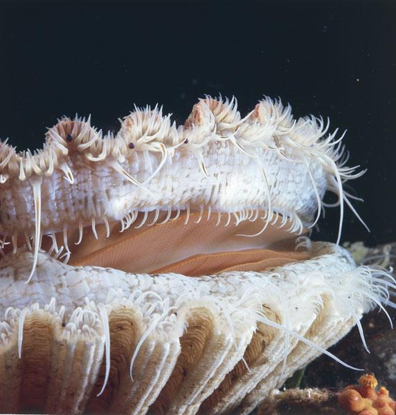 Detto anche cappa santa, capasanta o conchiglia di San Giacomo, il ventaglio è comune nel Mar Mediterraneo e presenta la tipica conchiglia - dalla cui forma prende il nome - con le valve asimmetriche, una convessa e l’altra piana. Come gli altri appartenenti al genere Pecten, questo mollusco vanta un apparato visivo tra i più evoluti dei Bivalvi, ed è in grado di "nuotare" per brevi tratti. Infatti, aprendo e chiudendo ripetutamente le valve ed espellendo l’acqua dalla cavità del mantello, il ventaglio si muove a balzi lunghi fino a 3 metri. I salti possono ripetersi più volte e, anche se il loro andamento non è regolare, la funzione difensiva nei confronti dei predatori è senz’altro efficace. In genere il ventaglio nuota con la cerniera rivolta posteriormente, ma, se viene attaccato da una stella di mare o da un polpo, fugge in senso contrario a quello abituale. La valva curva del ventaglio era un tempo usata dai pellegrini impegnati nel viaggio verso Santiago de Compostela (in Galizia) come ciotola per attingere acqua, ed era divenuta un vero e proprio simbolo del pellegrinaggio. Il nome scientifico della specie (jacobaeus) onora appunto l’apostolo Giacomo.