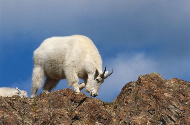 Presente in origine in Alaska e sulle grandi catene montuose tra Stati Uniti e Canada, la capra delle nevi, o capra di montagna, oggi vive nei grandi parchi nazionali del Montana e dello Stato di Washington, in Alaska e sulle Montagne Rocciose canadesi. Ha corporatura robusta, è alta circa un metro e pesa da 80 a 130 chilogrammi. Il mantello è candido, lungo e folto, con una criniera che dalla nuca arriva al garrese. Il capo si presenta allungato e gli occhi sono vicini all’inserzione delle corna, che, presenti in entrambi i sessi, sono aguzze, di colore nero, anellate alla base e a sezione rotonda. Gli zoccoli sono provvisti di cuscinetti elastici e callosi, grazie ai quali la capra delle nevi si muove con estrema agilità sulle rocce, sulla neve e sul ghiaccio dei dirupi; 2 dita rudimentali situate posteriormente e lateralmente a quelle centrali le impediscono di scivolare. Attiva dal tramonto a mezzogiorno, in estate si ciba di erba, arbusti e fiori, d’inverno di muschi, licheni e germogli di conifere. Oltre che dagli alimenti, ricava buona parte dell’acqua necessaria per vivere dalla neve, che è costantemente presente nel suo habitat. Il grado di socialità varia a seconda della stagione: d’inverno forma branchi numerosi, che in primavera si spostano alla ricerca di incrostazioni di sale, di cui è golosa; in estate forma piccoli gruppi o vive sola.