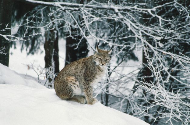 Detta anche lupo cerviero, la lince europea vive nelle foreste e negli ambienti rocciosi dell’Europa – dove ormai è ridotta a poche aree (Russia, Carpazi, Scandinavia) –, e dell’Asia centrosettentrionale. In Italia, dopo quasi un secolo, è tornata a essere presente in ristrettissime zone delle Alpi (Parco del Gran Paradiso e Alpi Giulie) grazie a individui provenienti dalla Svizzera e dalla Slovenia. La lince europea presenta caratteristiche orecchie triangolari sormontate da un ciuffo di peli, che la rendono inconfondibile tra tutti i felini. Il mantello è grigio-rossastro screziato di bianco, con macchie bruno-rossastre; la coda è breve, terminante in una larga punta nera. Le linci cacciano all’agguato; quelle che vivono nel Nordeuropa predano principalmente renne e caprioli, quelle nordamericane prediligono la lepre delle nevi. La loro acutezza visiva nell’avvistare le prede è divenuta proverbiale. Durante il periodo riproduttivo i maschi si sfidano in violenti duelli per assicurarsi le femmine. Dopo una settantina di giorni dall’accoppiamento vengono alla luce da 1-4 cuccioli. Ciechi e dipendenti in tutto dalla madre, i piccoli cominciano a rendersi autonomi a un paio di settimane dalla nascita, ma rimangono sotto la protezione materna per i successivi 11 mesi.