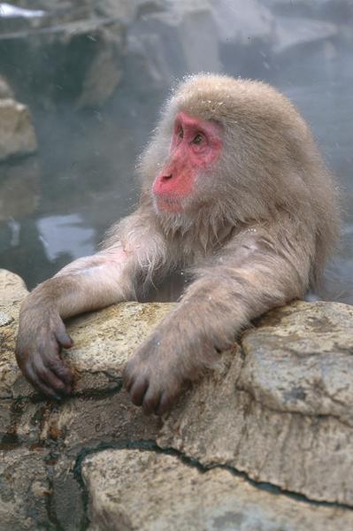 Detto anche macaco dalla faccia rossa perché gli individui adulti hanno il viso color rosso vivo, questo inconfondibile primate è presente in numerose isole del Giappone e vive in zone miste con foreste e terreni aperti, anche ad alta quota. I maschi, più grandi delle femmine, raggiungono un peso di 11 chilogrammi; il mantello è grigio o bruno in entrambi i sessi e d’inverno diventa più folto; il viso è nudo. Il pollice opponibile alle altre dita fa sì che questa scimmia abbia una notevole capacità di manipolazione degli oggetti. Rispettato dagli indigeni fin dall’antichità, il macaco del Giappone forma gruppi di 20-30 individui, che talora possono anche superare i 100, ordinati gerarchicamente. Il ruolo di comando è affidato ai maschi dominanti, riconoscibili per la maggiore aggressività e per il fatto che si muovono sicuri, con la coda eretta verticalmente; la coda abbassata è invece segno di subordinazione. Gli individui sono tenuti a rispettare rigide priorità di rango (ad esempio nel momento del pasto o della scelta delle femmine), altrimenti i maschi dominanti reagiscono con aggressioni e morsi. Il macaco del Giappone si nutre principalmente di frutti, ma nella sua dieta possono entrare germogli, foglie tenere, semi e insetti.