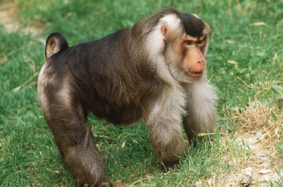 Chiamato anche macaco coda di porco, il macaco nemestrino vive nel fitto delle foreste e nelle aree paludose dell’Asia sudorientale, dal livello del mare ai 2000 metri di altitudine. È una delle specie più grandi del genere Macaca: gli arti sono molto lunghi, il mantello è bruno, la coda corta (13-24 cm), semieretta e a ricciolo, ricorda un po’ quella del maiale. Nonostante non sia particolarmente aggressivo, tanto che in alcune regioni le femmine e i giovani vengono addestrati per la raccolta delle noci di cocco, questo macaco ha un aspetto imponente e piuttosto minaccioso, soprattutto quando, nel momento del pericolo, apre la bocca per mostrare i canini superiori, assai sviluppati nei maschi. Vive in gruppi e la sua dieta si basa per lo più su frutti, semi, foglie e insetti.