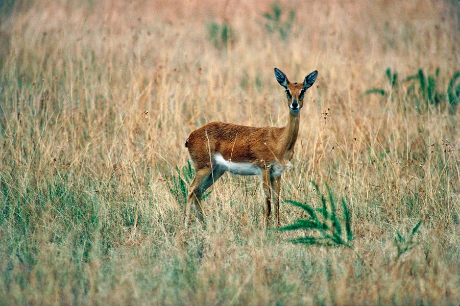 Presente in modo discontinuo nelle savane e nelle boscaglie dell’Africa a sud del Sahara, l’oribi appartiene al gruppo delle antilopi nane. Ha mantello gialliccio, biancastro nelle parti inferiori. Sia i maschi sia le femmine possiedono un caratteristico ciuffo di peli chiari sulle ginocchia. Le corna, presenti solo nei maschi, sono di media lunghezza, diritte e leggermente rivolte in avanti. L’oribi vive solitario o a coppie; raramente si aggrega in gruppi che arrivano al massimo a 5-6 individui. Non esiste un preciso periodo riproduttivo, ma si nota un picco tra ottobre e novembre. Dopo 6-7 mesi di gestazione viene alla luce un solo piccolo, che nel giro di 4-5 mesi inizia lo svezzamento e, tra il decimo e il quattordicesimo mese, raggiunge la maturità sessuale ed entra nella vita adulta.