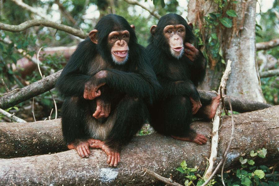 Lo scimpanzé vive nell’Africa centrale e occidentale, dal Gambia ai laghi Alberto e Vittoria, in genere nelle foreste fino a 2700 metri di altitudine, ma talora anche nella savana. Il folto mantello è nerastro, ma negli individui anziani assume una tonalità grigiastra. Sul dorso dei piccoli, vicino alla coda, è presente un ciuffo di peli bianchi che consente di identificarne l’età. Assai sviluppata è la testa, con occhi piccoli e infossati, grandi orecchie e bocca larga con labbra assai marcate. La ricca mimica facciale riproduce emozioni e stati d’animo in modo quasi “umano”. Le mani e le dita sono molto lunghe, ad eccezione del pollice, che è breve. Il peso è di 40-70 chilogrammi. Lo scimpanzé si muove agilmente sugli alberi appendendosi ai rami con le mani oppure saltando da un ramo all’altro. Quando è a terra cammina a quattro zampe appoggiando le nocche delle dita e, poiché gli arti anteriori sono più lunghi di quelli posteriori, la parte anteriore del corpo risulta sollevata. Si nutre di frutti e foglie, ma gradisce anche piccoli invertebrati, uova e miele; sembra che sappia riconoscere alcune piante medicinali e servirsene alla bisogna. Vive in gruppi di una decina di individui, che possono essere costituiti da maschi adulti o da femmine adulte con i loro piccoli, oppure ancora da maschi e femmine adulti con prole. La gestazione dura in media 230 giorni e in genere viene alla luce un solo piccolo. La riduzione delle popolazioni di scimpanzé è dovuta principalmente alla deforestazione a scopi agricoli, cui si aggiunge la cattura (oggi molto meno frequente che in passato, grazie alle norme di tutela) a scopo circense o di studio. Esistono le sottospecie Pan troglodytes schweinfurthii, Pan troglodytes troglodytes, Pan troglodytes verus e Pan troglodytes vellerosus.