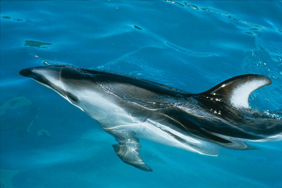 Il tursiope è un delfino presente in tutti i mari caldi e temperati, in cui frequenta di solito le acque costiere e le foci dei fiumi; si trova anche nel Mediterraneo. Lo caratterizzano la testa corta e larga, che culmina in un breve e robusto rostro, le pinne pettorali falcate, un’alta pinna dorsale e una larga pinna caudale. Si distingue dal delfino comune per le dimensioni maggiori e il rostro più corto. La pelle è nerastra o grigio scuro nelle parti superiori del corpo e biancastra nelle parti inferiori, talora con sfumature rosate. Come il “cugino”, è in grado di compiere salti acrobatici fuori dall’acqua. Si nutre di pesci e cefalopodi; la caccia in mare aperto ha carattere collettivo e prevede come tattica principale l’accerchiamento di un branco di prede. Lungo le coste, dove il tursiope usa spingere i pesci a riva per catturarli in acque basse, può accadere che singoli individui caccino da soli. Per stordire le prede si ipotizza che usi vocalizzazioni fortissime, fino a 230 decibel. Fra i delfini, i tursiopi sono quelli che meglio si adattano alla vita in cattività: sono quindi i tipici delfini da acquario, dove si dimostrano vivaci, confidenti e molto intelligenti.