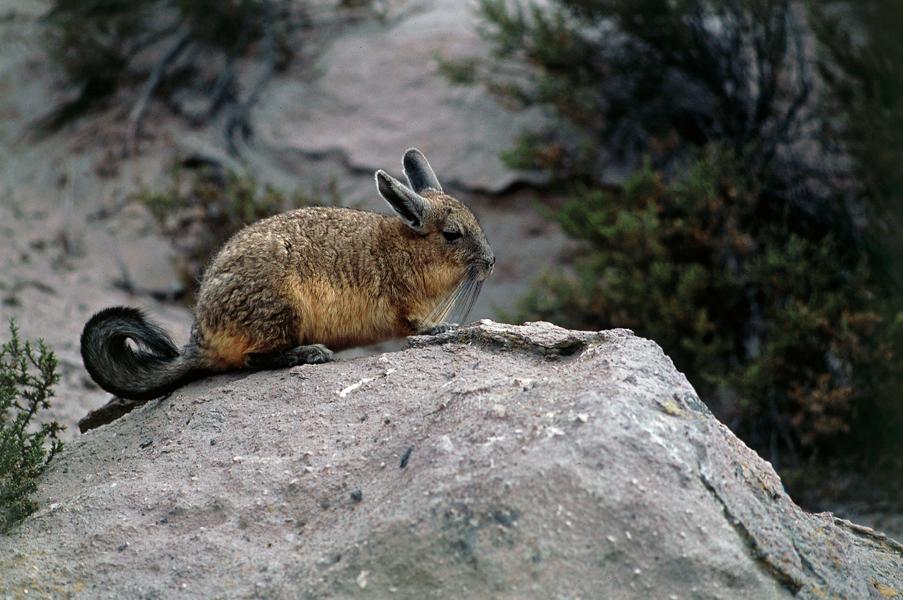 La viscaccia delle montagne vive sugli altopiani della catena andina tra Perú, Bolivia, Cile e Argentina. Predilige le zone d’alta quota fino a 5000 metri, anche se aride e prive di vegetazione, purché presentino un minimo di disponibilità di acqua e cibo. Ha orecchie sviluppate e vibrisse insolitamente lunghe. Il pregiato mantello, di diverse colorazioni, è folto e morbido, fatta eccezione per la coda, dove è ispido. La viscaccia delle montagne è un animale dalle abitudini diurne: infatti trascorre molte ore crogiolandosi al sole. Di costumi gregari, forma colonie che possono arrivare a contare 80 individui. Non scava tane, ma si ripara negli anfratti delle rocce. Strettamente erbivora, si ciba di muschi, licheni e delle poche piante che crescono nel suo habitat.