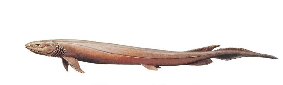 Il clamidoselacio vive in tutti gli oceani a una profondità compresa tra 100 e 1300 metri e, più che il mare aperto, preferisce le aree al largo delle grandi isole. È il più arcaico degli squali viventi e ha corpo bruno scuro uniforme, slanciato e curiosamente serpentiforme (tratto cui si deve l’altro nome di squalo anguilla). La testa è larga e la bocca, terminale, è armata di denti assai robusti e appuntiti, tutti uguali. Il clamidoselacio presenta 6 fessure branchiali per lato, piuttosto grandi e coperte da pieghe sinuose. Assai vorace, si ciba di pesci d’alto mare, di calamari e anche di carogne che trova sul fondo. È ovoviviparo.