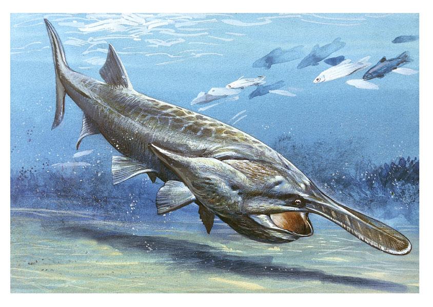 Il pesce spatola è presente nelle acque dolci degli Stati Uniti e predilige i bassi fondali melmosi. Un tempo viveva anche in Canada, ma dall’inizio del Novecento pare scomparso, tanto che in questo Paese è ormai considerato estinto. Di colore olivastro chiaro, ha struttura slanciata con ampia coda asimmetrica, pinne robuste e grande bocca armata di numerosi piccoli denti. Ciò che lo contraddistingue è lo stranissimo rostro appiattito, da cui prende il nome, che raggiunge la lunghezza di un terzo del corpo e serve a frugare nella melma per stanare i piccoli animali del fondo di cui il pesce spatola si nutre. Specie simile ma molto più grande e il cui rostro, più che a una spatola, assomiglia a una spada, è Psephurus gladius, presente nelle acque dolci della Cina e a rischio di estinzione.
