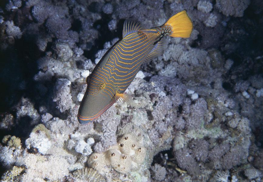 I pesci balestra della famiglia Balistidi sono diffusi in tutti i mari tropicali. Balistes carolinensis vive nell’Oceano Atlantico e nel Mar Mediterraneo. Ha corpo rivestito di placche spesse e rugose, grande testa e bocca piccolissima armata di grossi denti. La pelle ha colorazione grigio-argentea o grigio piombo. La prima pinna dorsale è costituita da 3 spine articolate tra loro; il primo raggio spinoso è il più robusto, il secondo serve a bloccarlo in fase di erezione e il terzo lo sblocca: a quest’ultima manovra si accompagna un rumore secco, simile allo schioccare di una balestra, da cui il nome dei pesci di questa famiglia. Questo dispositivo di blocco della pinna dorsale consente ai pesci balestra di nascondersi nelle fenditure della roccia, da dove non è possibile estrarli. La dieta comprende pesci, crostacei, molluschi e anche madrepore, grazie ai robusti denti capaci di frantumarne le conchiglie. Se tolti dall’acqua, i pesci balestra possono emettere suoni simili a grugniti sfregando le ossa del cinto scapolare.